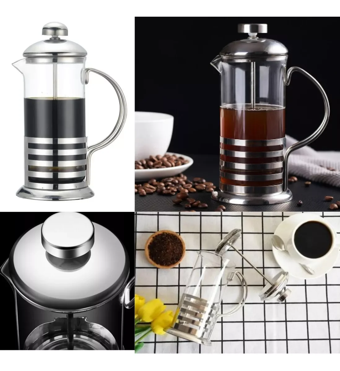 Portable French Press Coffee Maker Stainless Steel Coffee Percolator Durable Heat Resistant Glass For Kitchen Travel Camping